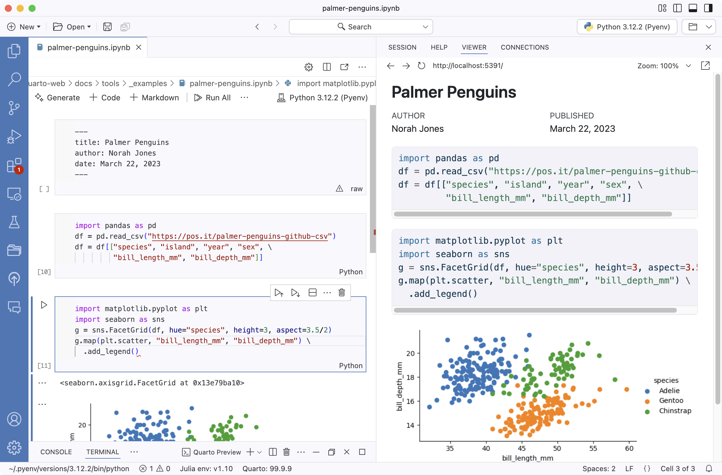 notebooks that are rendered with Quarto. In this article we’ll review the basics of editing .ipynb