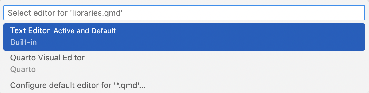 document in the file explorer and select the Open With… command, which will prompt you for the editor to open the file with: